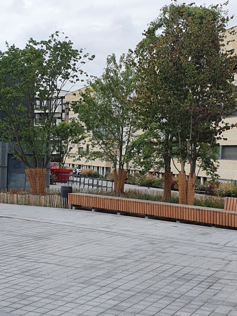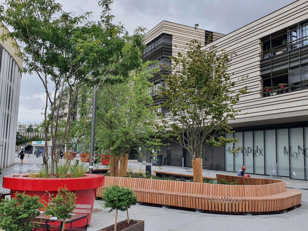 Plantation d’arbres et création de zones de verdure dans les espaces publics pour apporter fraîcheur, confort et biodiversité en cœur d’agglomération.