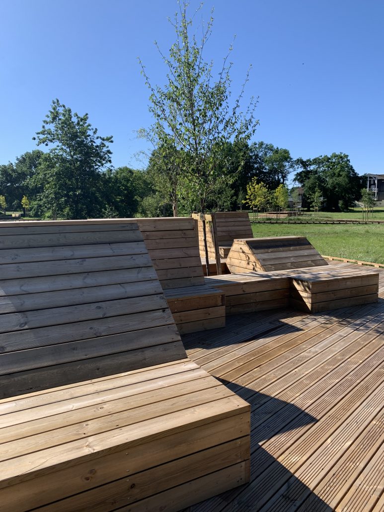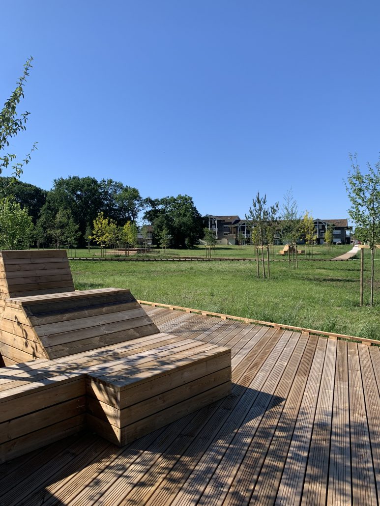 Type d’aménagement : Plantation, arrosage, mobilier, terrasse, paillage, jeux pour enfants.